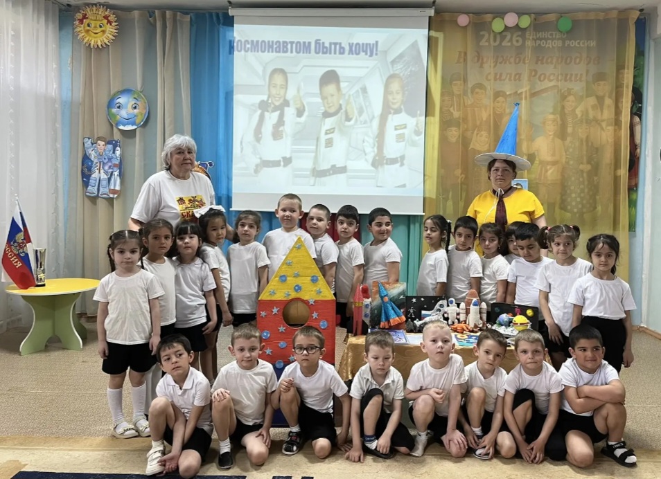 Дети с родителями приняли участие в выставке "Космос, звезды,, космонавт", на которую подготовили семейные творческие работы на космическую тематику. Итоговым мероприятием недели стал праздник "Путешествие в космос". Детей ждали интересные испытания, которые приготовил Незнайка. Дошколята рассказывали стихи про космос, подготовили сценку "Каждый хочет стать космонавтом". Ребята с удовольствием посмотрели презентацию "Первый полет".