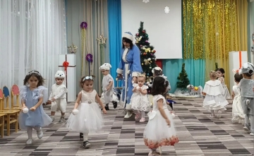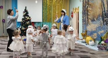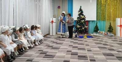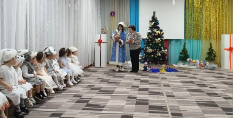 Ребята средней группы наши юные артисты подготовили удивительные номера: танец гусаров, танец кукол, яркие танцы с Дедушкой Морозом и Снегурочкой. В гости к ребятам пришла озорная Шапокляк со своей верной спутницей крыской Лариской. Шапокляк пришла вместо Дедушки Мороза и не хотела уходить, ребята чтобы она не вредничала ей танцевали, пели, стихи рассказывали. И Шапокляк сменила гнев на милость и превратилась в милую старушку. Ребята пригласили Шапокляк в гости на следующий Новый год!. Дедушка Мороз в конце праздника всем подарил подарки.